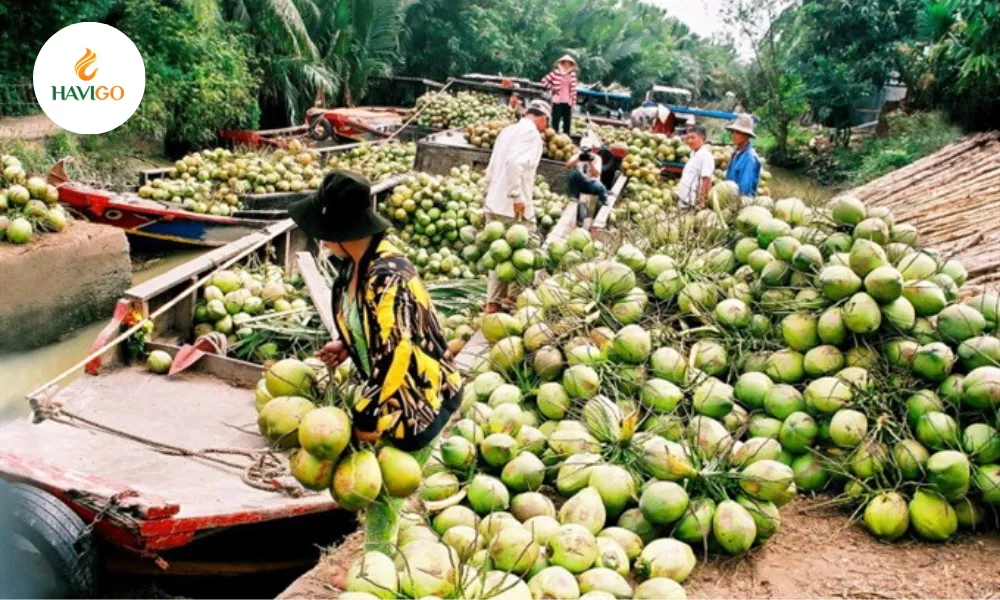 Vietnam produces high-quality coconuts mainly in the Mekong Delta and the South Central Coast. Key provinces like Ben Tre, Tra Vinh, Tien Giang, and Vinh Long supply the largest volume of fresh coconut product of Vietnam, while provinces such as Binh Dinh focus on both fresh and processed coconuts. These regions represent HAVIGO’s most reputable and trusted coconut origins, ensuring consistent quality for every shipment. Coconuts grow year-round, with peak harvest from December to April, allowing coconut exporters in Vietnam like HAVIGO to maintain a stable supply of premium coconuts for international buyers.